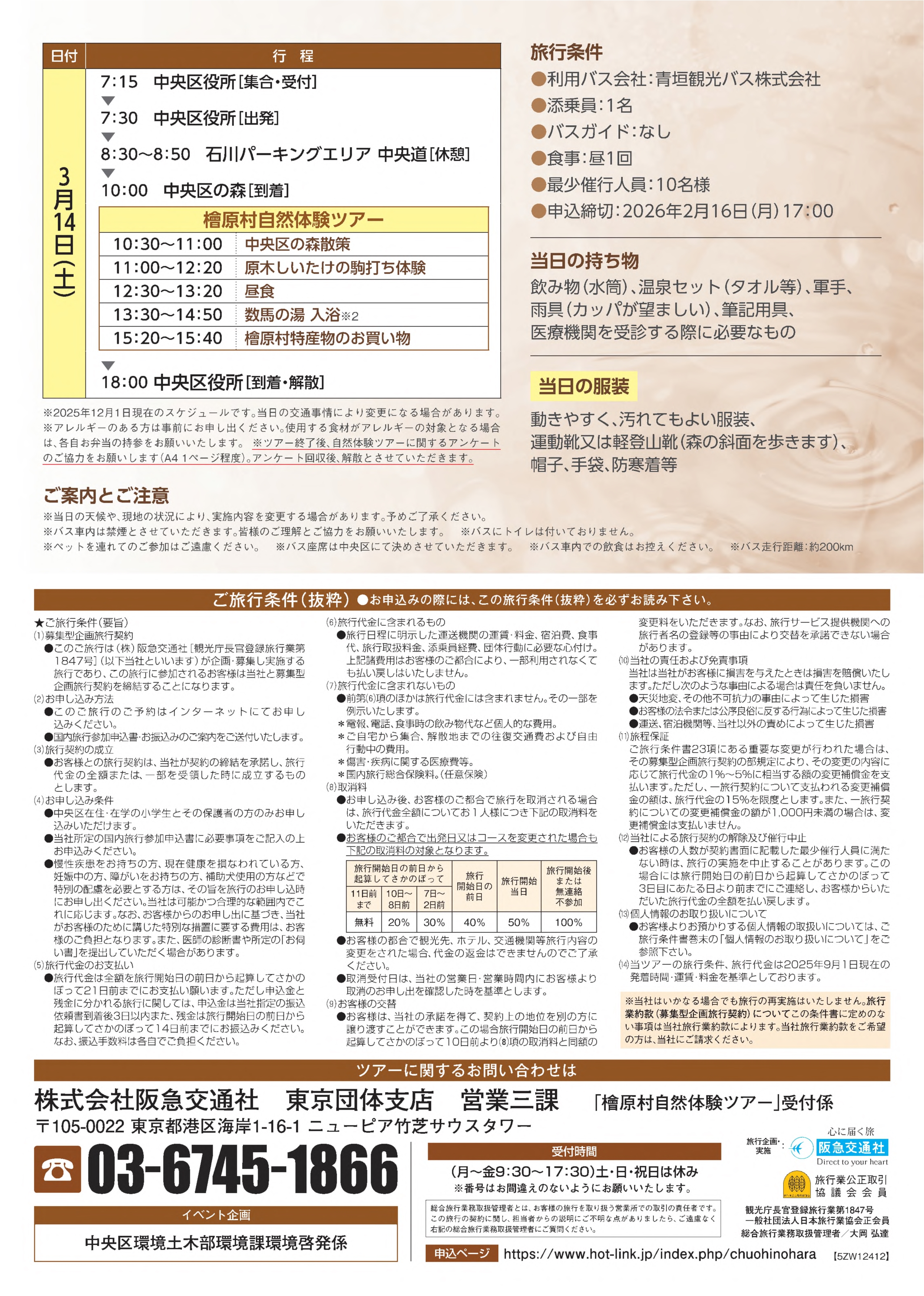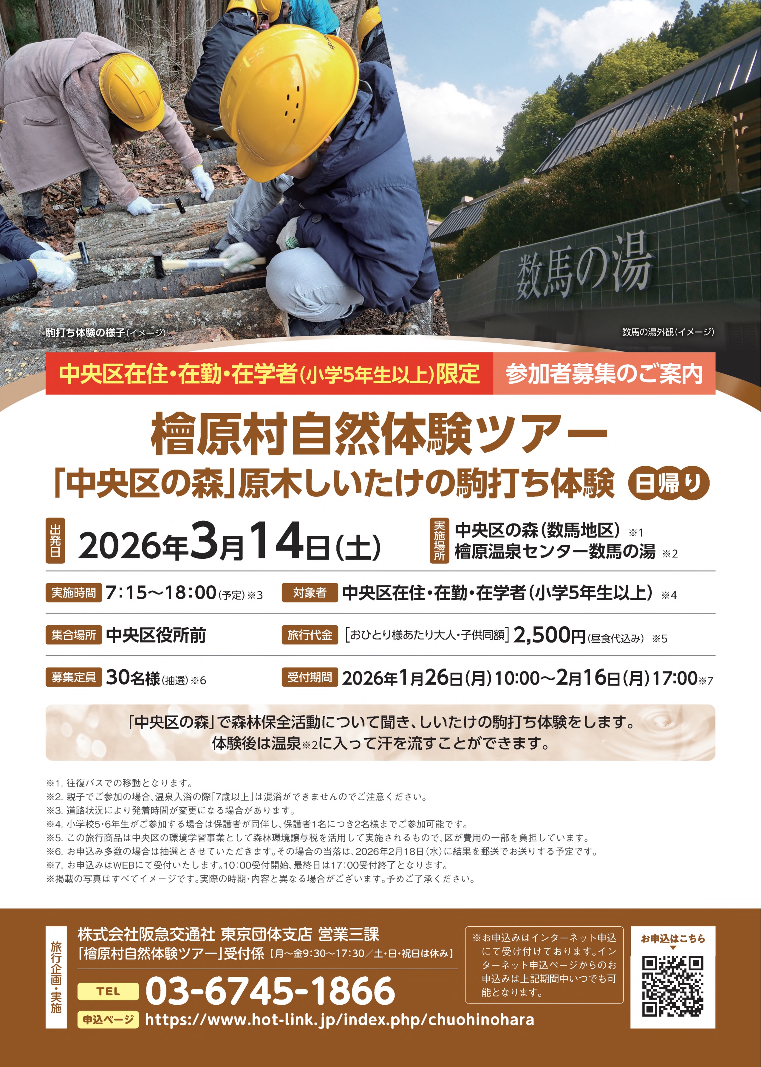 檜原村にある中央区の森をガイドと散策し、原木しいたけの駒打ち体験をするツアーを実施します。ぜひお申込みください。