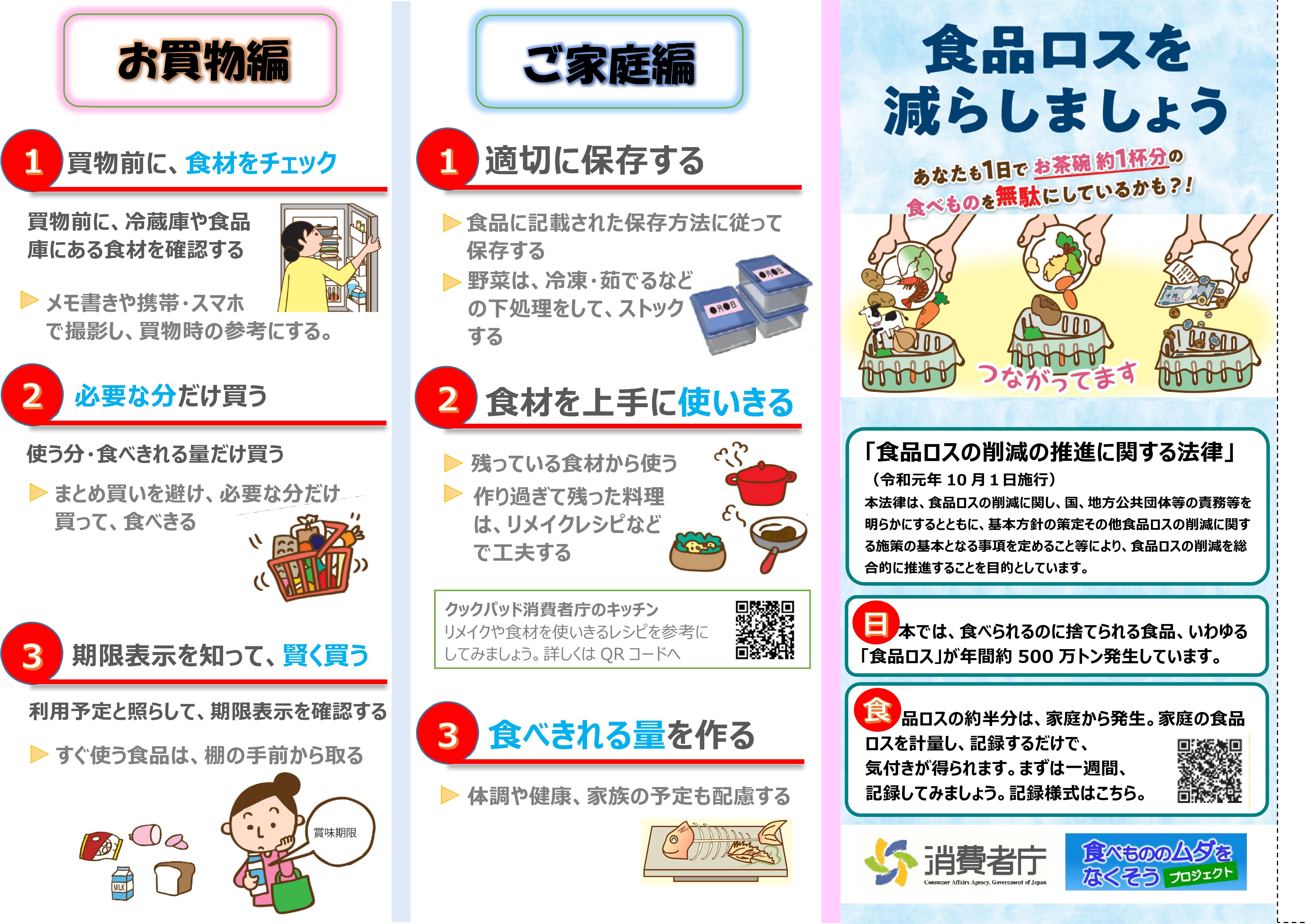 経済損失や地球温暖化への影響のことも考えながら、上記の目標を達成するためにも、今後さらに食品ロスを削減していくことが重要です。皆さんも下記を参考に取り組んでみましょう!